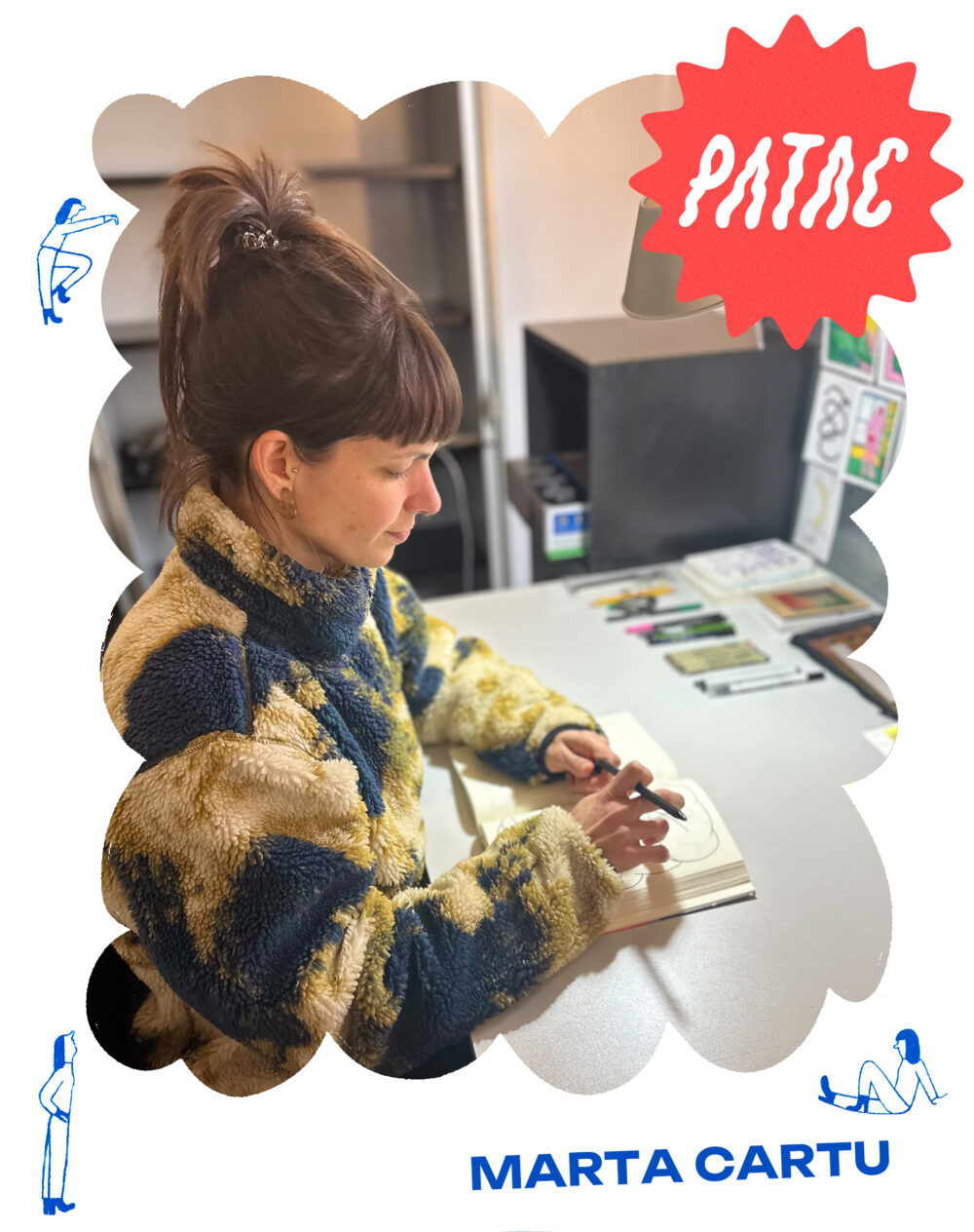 Marta Cartu és llicenciada en Belles Arts i especialitzada en dibuix i educació. La pràctica artística de Marta Cartu s’interroga al voltant de la relació que construïm amb les narratives visuals. La seva obra es desplega al voltant del còmic i els seus canals de circulació, com ara l’autoedició i els espais digitals. És autora del còmic Hola, Siri (Ediciones Marmotilla) i de diferents fanzines com Triatlón, Even in deserts there is water i Un tumor muy guai. També ha participat en exposicions col·lectives com ara «Constel·lació Gràfica» al CCCB, «Còmic, somnis i història» a CaixaForum i «Espacios de Seguridad» a la Sala d’Art Jove. Ha dissenyat activitats i intervencions educatives per a diferents entitats culturals, com ara el CCCB, MNAC, Disseny HUB o el Born CCM.