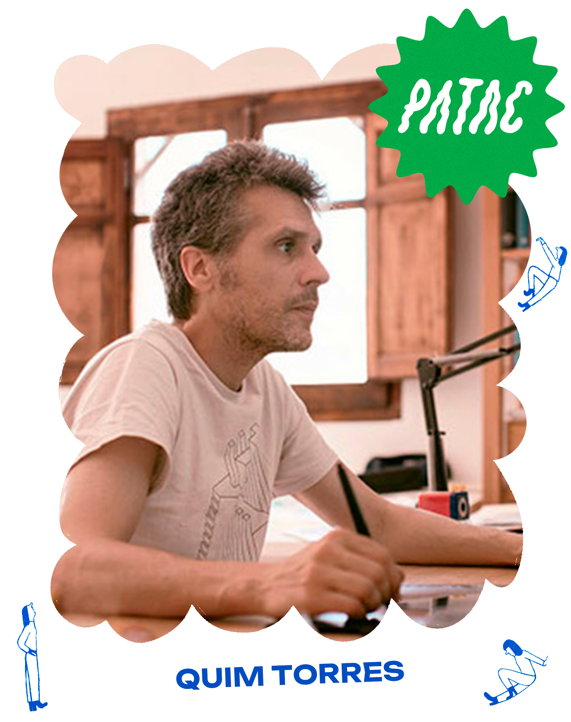 Quim Torres va néixer a Castellserà i l'apassiona explicar històries a través del dibuix. Des del 2011 viu a Barcelona on ha cursat un postgrau d'il·lustració a Eina. El seu treball s'ha publicat a Cruïlla, La Galera, Baula, Flamboyant, Babulinkabooks, Flies France, kidaribook, Trapublishing, Panamericana, El Naranjo, Zahorí Books, Claraboya, Hélium, etc. Actualment compagina la il·lustració editorial amb la creació de tallers on utilitza el dibuix com una eina d'autoconeixement. És l’autor del Cartell de la 3a edició de Patac 2025. La llibreria El Genet Blau presenta l’exposició Quim Torres. Il·luminant històries, de l'1 al 31 d'octubre de 2025, comissariada per Patac.